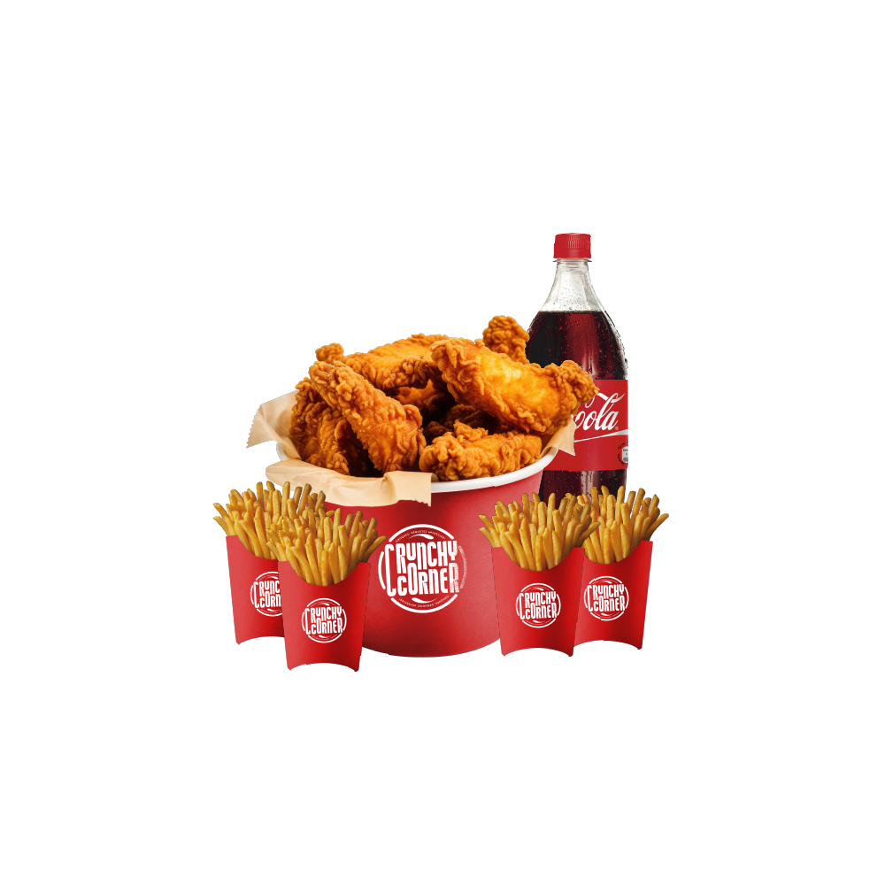 Box de 35 wings épicés servis avec 4 frites classique et 1 Boissons de 1,25L