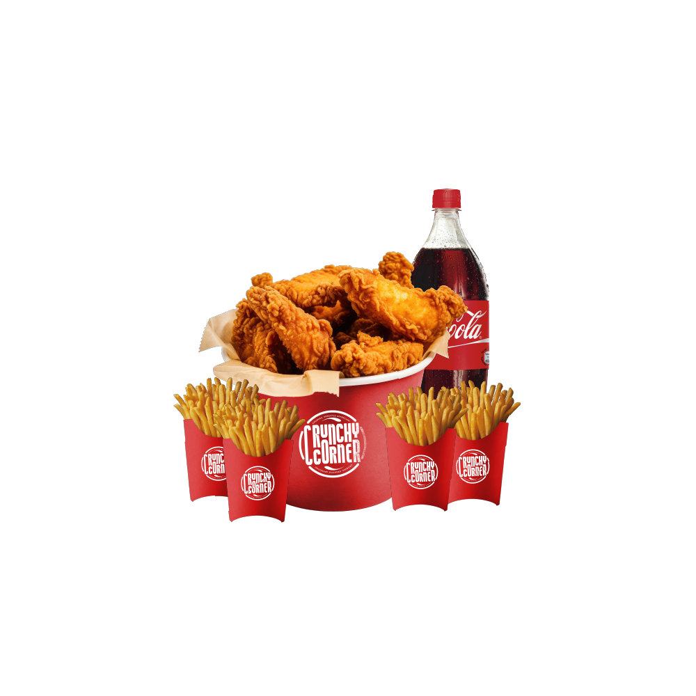 Box family tenders crunchy x20 servis avec 4 frites classique et 1 Boissons de 1,25L