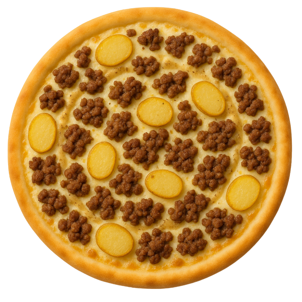 Crème fraîche, sauce poivre, double fromage, viande hachée, pomme de terre