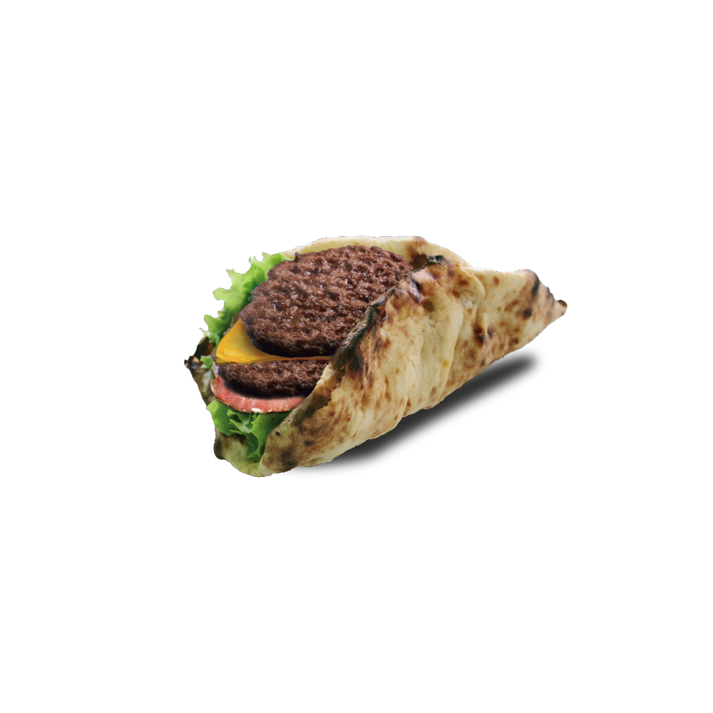 Naan fourré au fromage, 3 steak, jambon de dinde, boursin
