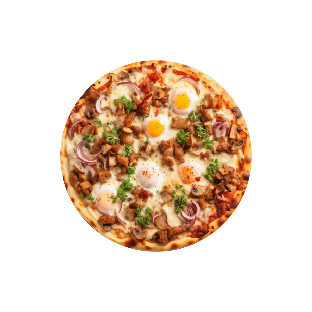 Crème fraîche, double fromage, viande hachée, lardons, champignons, œuf